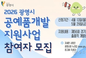 - 경기도 공예품대전 출품작 개발·제작비 지원… 상품화 가능성 등 고려해 차등 지원 - 공예인의 경제적 부담 경감해 창작활동 촉진… 5월 29일 오후 6시까지 신청 받아 광명시가 지역 공예인의 창작활동을 지원하기 위해 최대 200만 원을 지원한다. 시는 제56회 경기도 공예품대전에 출품하기 위해 공예품을 제작하는 업체·개인에 제작비를 지원하는 ‘2026년 공예품개발 지원사업’ 참여자를 오는 5월 29일까지 모집한다. 이번 사업은 공예인의 경제적 부담을 줄여 창작활동을 촉진하고, 대회 수상 성과를 바탕으로 공예품 판로를 확대해 지역 공예산업 활성화를 도모하기 위해 추진한다. 지원 대상은 공고일인 4월 13일 기준 광명시에 주소를 둔 개인 또는 사업장을 둔 사업자이다. 지원 내용은 ▲공예품 생산에 필요한 재료비 ▲공예품 개발에 필요한 설계 및 디자인 개발 비용 ▲공예품 개발에 필요한 포장재, 공구 구입비와 같은 기타 경비 등이다. 인건비, 출품작의 개발·제작과 무관한 내용은 지원하지 않는다. 최종 지원 대상은 상품화 가능성, 공예 경진대회 입상 실적 등을 평가해 업체(개인)당 최대 200만 원 내에서 차등 지원한다. 참여를 원하는 업체는 광명시청 누리집(gm.g
