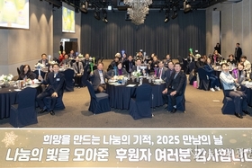 - 누적 모금액 317억 원 돌파… 시민과 함께한 희망 나눔의 결실 - 2025년 희망나눔에 동참한 후원자들에게 감사의 마음을 전해 광명시사회복지협의회(회장 이상재)는 10일 테이크호텔 광명 루미나스홀에서 광명희망나기운동본부 주관으로 ‘2025 희망나눔 만남의 날’을 개최했다. 이날 행사에는 박승원 광명시장을 비롯해 이상재 회장, 광명희망나기운동본부에 기부한 후원자 등 100여 명이 참석했다. 참석자들은 축하공연을 시작으로 지난 14년간 시민들과 함께한 다양한 모금·나눔 활동의 성과를 공유하고, 지속적으로 참여해온 개인·기업·단체 후원자들에게 표창과 감사패를 수여하며 감사의 뜻을 전했다. 광명희망나기운동본부는 2025년 한 해 동안 30억 원 이상의 모금을 달성하고 약 9만여 명의 시민에게 지원을 제공했다. 특히 올해는 출범 이후 누적 모금액 300억 원을 돌파하며 12월 기준 총 317억 원을 기록하는 의미 있는 성과를 거뒀다. 박승원 광명시장은 “광명희망나기운동본부를 통해 시민들이 함께한 나눔이 추운 겨울 큰 온기로 전해지고 있다”며 “항상 곁에서 함께한 후원자들에게 감사의 뜻을 전하고 복지사각지대를 세심하게 살피며 지원체계를 강화해 나가겠다”고 말했다.