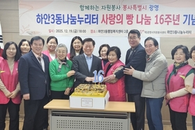 광명시 하안3동 나눔누리터(단장 이미경)는 광명시자원봉사센터(센터장 김영준), 하안3동 행정복지센터(동장 김영래)와 함께 지난 19일 하안3동 행정복지센터 2층 회의실에서 ‘사랑의 빵 나눔’ 16주년 기념식을 개최했다. 이번 기념식은 지역 내 취약계층을 위해 꾸준히 봉사활동을 이어온 나눔누리터의 16년간의 성과를 되돌아보고 나눔의 의미를 나누는 자리로 마련했다. 행사에는 박승원 광명시장을 비롯해 광명시자원봉사센터 거점 4개 동의 나눔누리터 코디네이터 및 임원, 자원봉사센터 관계자, 지역 단체장 등 50여 명이 참석했다. 하안3동 나눔누리터는 광명시자원봉사센터의 거점 조직으로, 2009년부터 매주 빵과 돈가스, 치킨 등을 후원받아 관내 취약계층 60여 명에게 전달하는 봉사활동을 16년째 이어오고 있다. 또한 쌀이 필요한 주민들을 위한 ‘쌀 항아리’를 운영하고 있으며, 매년 두 차례 바자회를 열어 수익금으로 어려운 이웃에게 쌀과 생필품을 전달하는 등 다양한 나눔 활동을 꾸준히 실천하고 있다. 박승원 시장은 “16년이라는 긴 시간 동안 나눔누리터의 활동이 이어질 수 있었던 것은 지역에 대한 애정과 봉사자들의 헌신 덕분”이라며 “여러분의 따뜻한 나눔이 하안3동과 광