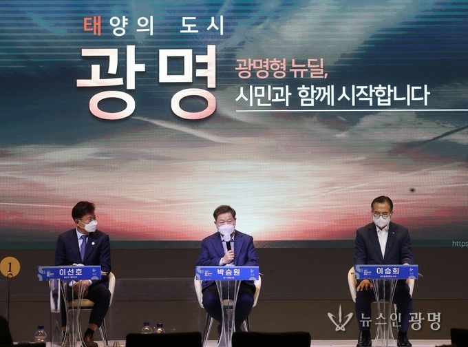 박 시장은 광명형 뉴딜 사업으로 탄소중립과 일자리창출 양립을 이끄는 지방정부의 모범적 역할에 대해 발표했다. 시민과 함께 하는 탄소중립 실천 사업으로 ▲기후에너지센터 운영 ▲햇빛발전소 건립 ▲넷제로카페운영과 기후의병 활동 ▲스마트시티 조성 ▲광명형 마을 뉴딜 등을 소개했다.