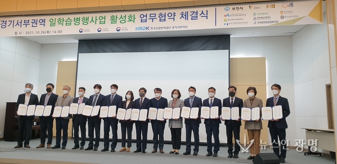 광명시(시장 박승원)는 지난 26일 한국산업인력공단 경기서부지사 주관으로 경기서부권역 지자체, 고용노동부 등 교육훈련기관과 ‘일학습병행 사업 활성화를 위한 업무협약’을 체결했다.