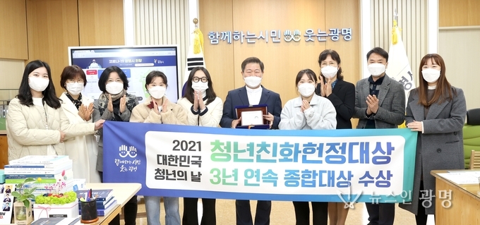 광명시는 지난 6일 올림픽공원 평화의 광장에서 열린 2021 대한민국 청년의 날 기념식에서 청년친화헌정대상 3년 연속 기초자치부문 ‘종합대상’을 수상했다고 8일 밝혔다.