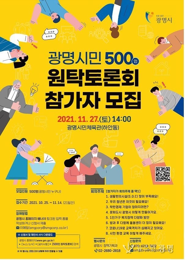 한편 광명시는 2018년부터 매년 500인 원탁토론회를 열어 광명시의 발전 방안을 시민과 함께 찾고 시민의 의견을 정책에 반영하고 있다. 2018년 첫 원탁토론회는 시정방향과 우선 추진사업을 결정하는 자리로 주요 현안에 대해 시민의 지혜를 모았다.