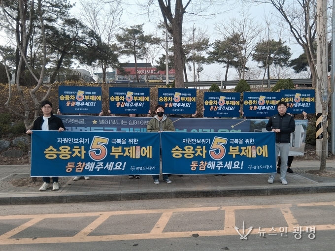광명도시공사(사장 서일동, 이하 공사)는 자원안보위기 경계 단계 경보가 발령됨에 따라 4월 1일부터 4월 3일까지 임직원이 참여하는 승용차 5부제 동참 캠페인을 실시하였다고 밝혔다. 이번 캠페인은 직원 및 시민의 에너지 절약 동참과 승용차 5부제 알림을 위해 진행되었으며 자원안보위기는 총 4단계로 관심 → 주의 → 경계 → 심각의 순서로 발령된다.