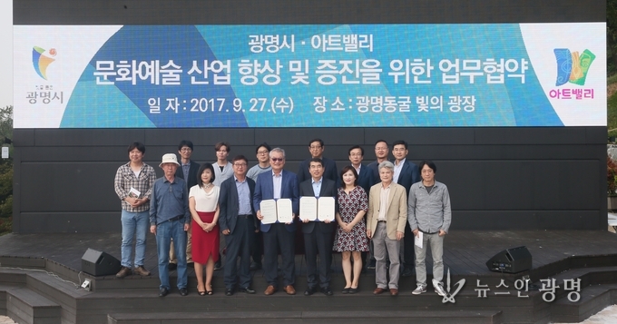 양기대 광명시장은 27일 광명동굴 앞 빛의광장에서 윤영달 아트밸리 회장과 업무협약을 체결하고, 공연·전시 예술의 확산·보급 및 문화 복지 구현, 문화관광명소 구축에 상호 협력해 나가기로 했다.