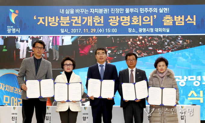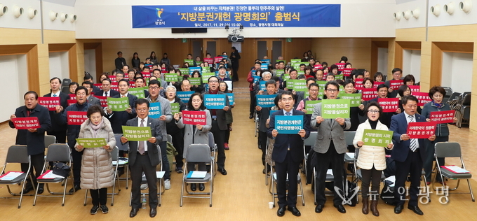 광명시는 29일 지방분권 개헌을 위해 각계각층이 참여하는 『지방분권개헌 광명회의』출범식을 가졌다.