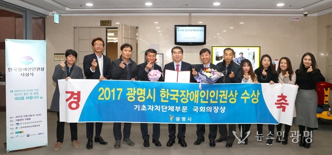 광명시(시장 양기대)는 6일 서울 여의도 이룸센터에서 개최된 한국장애인인권상 시상식에서 전국 246개 지방자치단체 중 유일하게 한국장애인인권상(훈격 국회의장상)을 수상했다고 밝혔다.