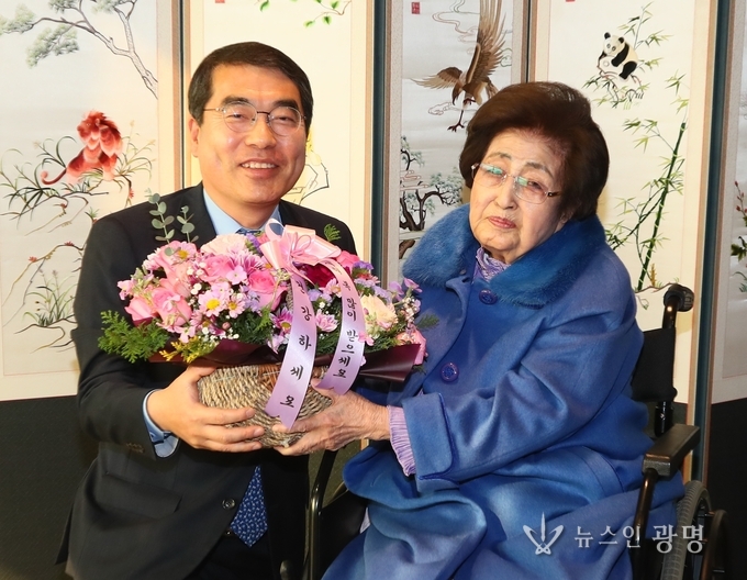 이에 이희호 여사는 “양 시장이 김 대통령의 뜻을 이어받아 실현해 줄 것을 기대한다”며 “나도 기도를 드리겠다”고 말했다.