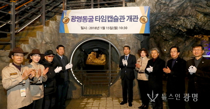 이와 함께 광명시는 타임캡슐관에 ‘광명동굴을 만든 사람들’(도서), ‘광명가학광산 동굴 100년 스토리’(도서), 공사자료(CD), 기념사진, 보도자료 등 광명동굴의 개발 및 운영 전반에 관한 각종 자료 30여점을 봉인해 장기 보관한다.