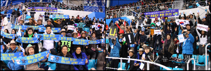 특히 광명시 응원단은 ‘평화!평창! 빛을 품은 광명! 하나된 남북!’이라는 대형 현수막을 내걸어 북한 응원단과 외국인의 눈길을 끌었다.