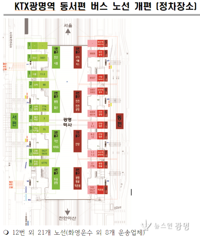 오는 21일부터 KTX광명역의 대중교통 이용환경이 전면 개편된다.