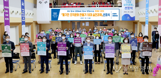 시는 코로나19로 지친 직원들을 격려하고 즐거운 일터를 만들어 가고자 ‘활기찬 조직문화 만들기 10대 실천과제’를 선정하고 1일 선포식을 개최했다.