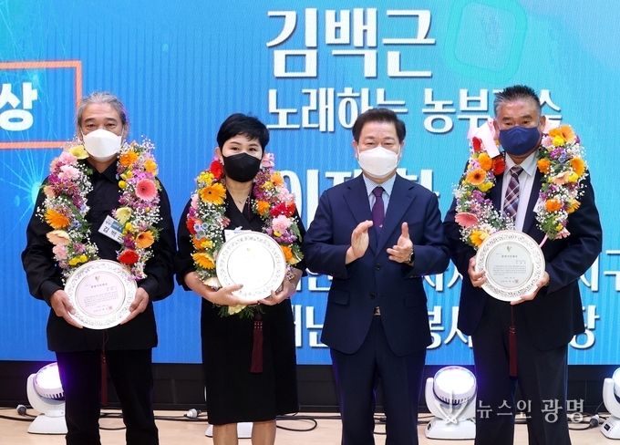 광명시민대상은 하안2동 주민자치회 회장 오은주 씨, 노래하는 농부가수로 활동 중인 김백근 씨, 민주평화통일 자문위원인 이재한 씨가 수상했다.