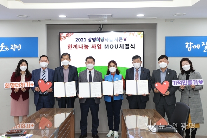 광명시는 쌀로 서로의 마음을 나누는 한끼나눔 사업추진을 위해 18일 시청 영상회의실에서 광명시기독교연합회, 광명시지역사회보장협의체, 광명시사회복지협의회-광명희망나기운동본부와 업무협약을 체결했다.