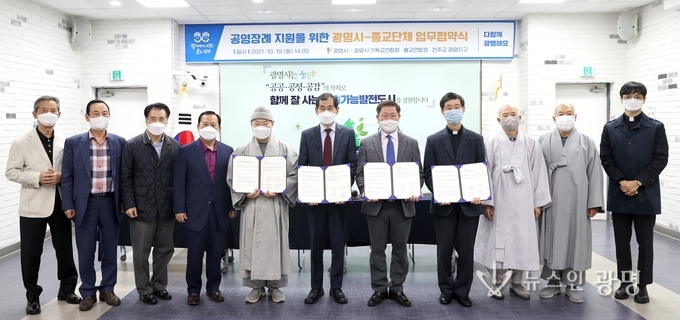 시청 중회의실에서 열린 이날 협약식에는 박승원 광명시장과 광명시 기독교연합회장 한남기 목사, 광명시 불교연합회장 상허 스님, 천주교 수원교구 광명지구장 박정배 신부 등 종교계 지도자 및 관계자들이 참석했다.