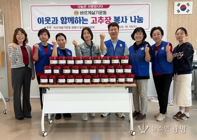 광명시 일직동 바르게살기위원회(위원장 홍상원)는 지난 15일 관내 어려운 이웃을 돕기 위해 ‘이웃과 함께 하는 고추장 나눔 봉사’ 활동을 실시했다.