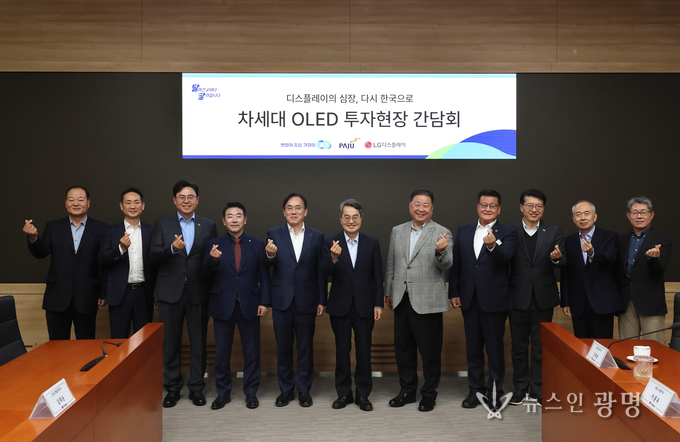 파주 LG디스플레이 R&D동에서 열린 차세대 OLED 투자현장 간담회에는 김경일 파주시장을 비롯해 박정 국회의원, 안명규·이용욱 도의원, LG디스플레이와 주요 협력사 대표 등 30여 명이 참석했다.