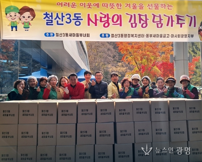 광명시 철산3동 새마을부녀회(회장 임순자)는 지난 19일부터 20일까지 이틀간 철산3동 행정복지센터 앞마당에서 ‘사랑의 김장 나누기’ 행사를 열었다.
