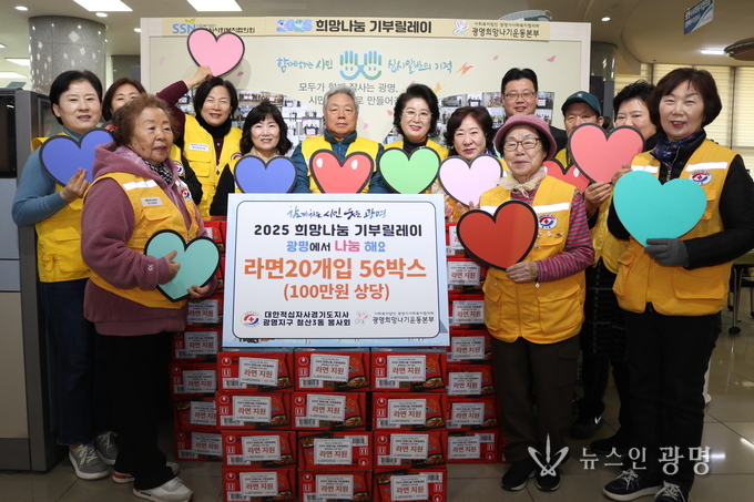 12월 18일(목), 대한적십자사 경기도지사 광명지구 철산3동 봉사회(회장 정병진)에서 광명시사회복지협의회(회장 이상재) 광명희망나기운동사업(이하 광명희망나기운동본부)에 희망성품 라면 20개입 56박스(100만원 상당)를 전달했다.