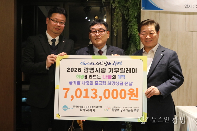 2월 5일(목), 경기도자동차전문정비사업조합 광명시지회(지회장 이영호)는 광명시사회복지협의회(회장 이상재) 광명희망나기운동사업(이하 광명희망나기운동본부)에 희망성금 7,013,000원을 전달했다.