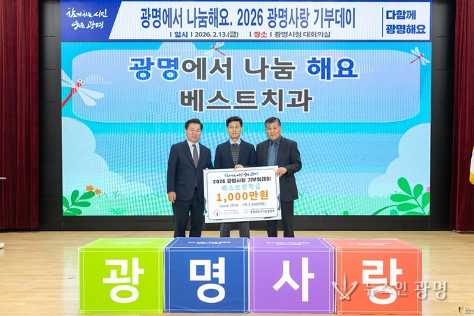 베스트치과에서 전달받은 성금은 광명희망나기운동본부를 통해 복지 사각지대 저소득 가정으로 전달될 예정이다.