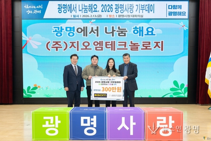 ㈜지오엠테크놀로지에서 전달받은 성금은 광명희망나기운동본부를 통해 복지 사각지대 저소득 가정으로 전달될 예정이다.