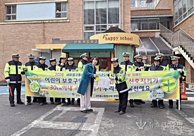 새마을교통봉사대 광명시지대(지대장 윤은숙)는 4월 6일 안현초등학교 앞 사거리에서 스쿨존 사고 예방 캠페인을 전개했다.