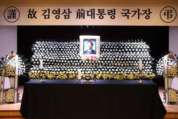 故 김영삼 전 대통령의 분향소가 24일 오전 7시30분 시민회관 소공연장에 설치되어 오후10시까지 조문객을 받고 있다. 시청직원들이 교대로 상주 역할을 하고 있고 광명시새마을지회에서 문상객을 맞으며 봉사활동을 하고 있다.