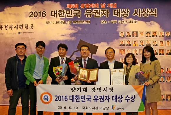 양기대 광명시장이 공약실천과 시정수행, 선거구민 소통 등에 우수한 평가를 받아 10일 국회 도서관에서 열린 ‘2016 대한민국 유권자 대상’을 수상했다.