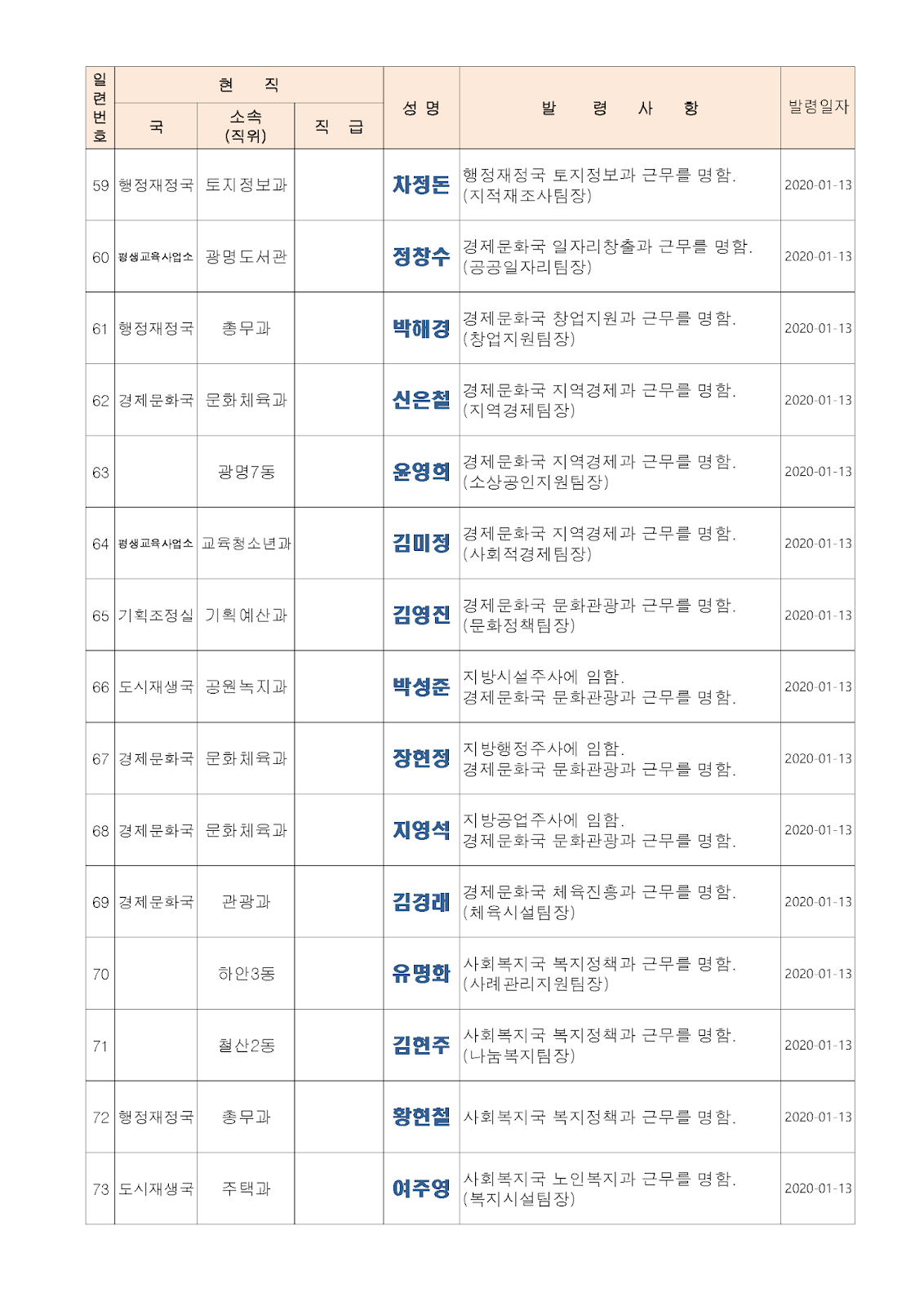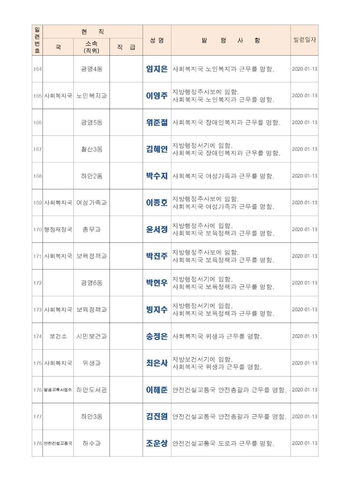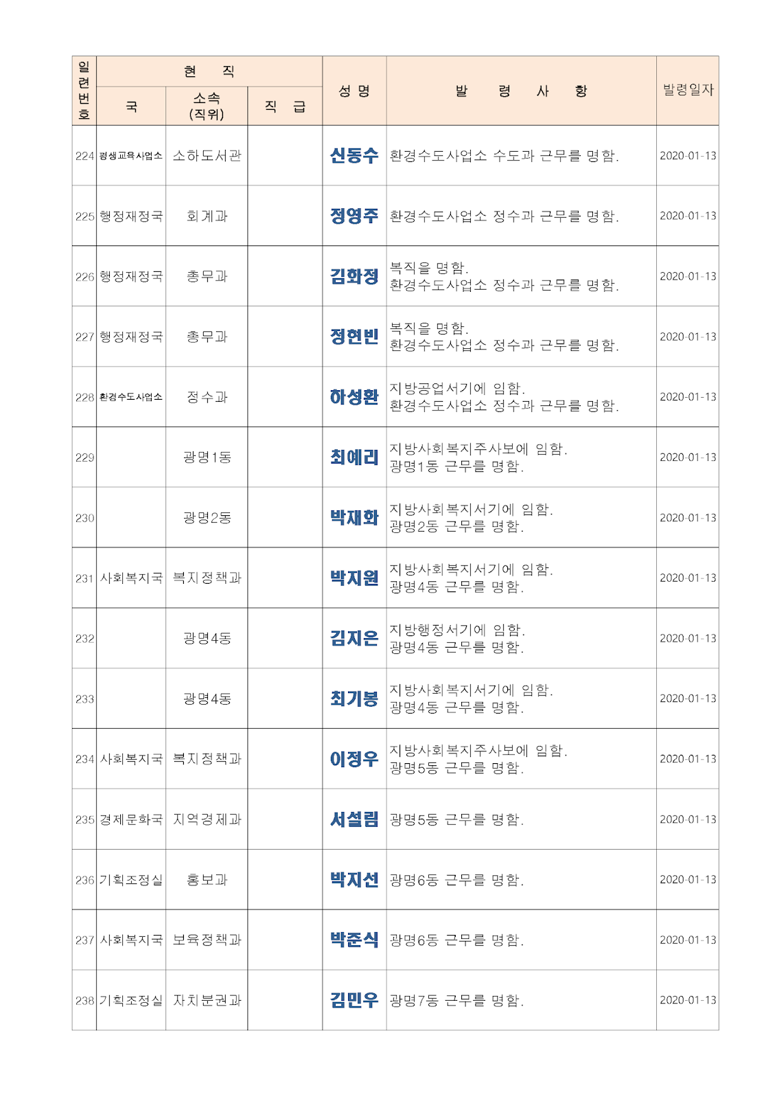 경제문화국장에 한상준, 홍보담당관에 서준희 등 1월 13일자 인사