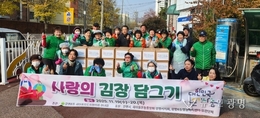 광명시 광명6동 새마을지도자협의회(회장 김은성)와 새마을부녀회(회장 이봉금)는 지난 19일부터 20일까지 이틀간 광명6동 행정복지센터 앞에서 ‘사랑의 김장김치 담그기’ 행사를 진행했다. 이번 행사는 새마을 회원들과 동 유관 단체원들이 함께 참여해 아침 일찍부터 늦은 시간까지 추운 날씨에도 구슬땀을 흘리며 진행했다. 이날 정성껏 담근 김장김치는 관내 경로당과 어려운 이웃 80여 가구에 전달했다. 김은성 회장과 이봉금 회장은 “추운 겨울을 앞두고 어려운 이웃들이 걱정 없이 따뜻하게 지낼 수 있도록 김장김치를 준비하게 돼 기쁘다”며 “모두 건강하게 겨울을 나고 행복한 일들만 가득하길 바란다”고 전했다. 배형식 동장은 “사랑의 김장나눔 행사를 통해 이웃사랑을 실천한 새마을 회원들에게 감사하다”며 “앞으로도 나눔과 따뜻함이 넘치는 광명6동을 만들어 나가는 데 함께하길 바란다”고 말했다.