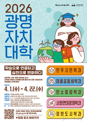 - 민주시민·마을공동체·탄소중립·정원도시·사회연대경제 5개 학과… 4월 22일까지 신청 - 5월 7일 입학식~10월 29일 졸업식, 20주 60시간… 이론·토론·현장실습 병행 광명시가 시의 핵심의제인 평생학습 마을리더 양성과정 ‘광명자치대학’ 2026년 신입생 125명을 오는 22일까지 모집한다. 2020년 시작해 올해로 7년 차를 맞이한 광명자치대학은 지속가능한 도시를 만들기 위해 이웃과 연대하고 마을 문제를 스스로 발견·해결하는 시민 마을리더 양성 과정이다. 학습과 실천을 연결해 지역사회 변화를 만들어가는 것이 특징으로, 지난 6년간 487명의 마을리더를 배출했다. 모집학과는 ▲민주시민학과 ▲마을공동체학과 ▲탄소중립학과 ▲사회연대경제학과 ▲정원도시학과로 5개다. 민주시민학과는 시민 의사결정과 참여 역량을 강화해 정책 제안까지 이어지는 경험을 제공하며, 마을공동체학과는 이웃과 협력해 마을 활동을 기획하고 실천하는 공동체 리더를 양성한다. 탄소중립학과는 지역에서 탄소중립 활동을 제안하고 실천하는 리더 양성을 목표로 한다. 사회연대경제학과는 협동과 연대를 바탕으로 지역경제 문제 해결과 지속 가능한 경제 모델을 탐색하고, 정원도시학과는 생활권 녹지를 시민 손으로