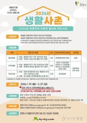 - 동네마중·지역생활·주제지정 3개 분야로 세분화… 모임당 50만~1천만 원 지원 - 3인 소규모 모임부터 20인 이상 주민모임·입주자대표회의까지 참여 확대 - 2월 27일까지 이메일·우편·방문 신청… 사전컨설팅 필수 - 박승원 시장 “주민 주도 공동체 활동이 작은 변화에서 도시의 지속가능한 성장으로 이어지도록 지원” 광명시(시장 박승원)가 이웃과 함께하는 작은 실천으로 공동체 변화를 만들어가는 시민 모임에 최대 1천만 원을 지원한다. 시는 공동주택 이웃 간 관계 회복과 생활권 중심 공동체 문화 확산을 위해 ‘2026년 광명시 생활사촌 공동주택 공동체 활성화 공모사업’ 참여자를 오는 2월 27일까지 모집한다. ‘생활사촌’은 생활공간을 공유하는 공동주택 공동체를 뜻한다. 이번 사업은 같은 단지에 거주하는 주민들이 일상 관심사를 매개로 자연스럽게 만나고 교류하며, 공동체 정신을 회복하고 다양한 갈등을 해소해 삶의 질을 높이는 것이 목적이다. 올해는 소규모 모임부터 단지 전체가 함께하는 활동까지 단계적으로 참여할 수 있도록 지원사업을 ▲동네마중 ▲지역생활 ▲주제지정 등 3개 분야로 나눠 공동체의 성장과 지속을 돕는다. 먼저 ‘동네마중’은 동일 단지 거주 주민 3인