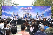 광명문화원(원장 윤영식)은 지난 28일 문화원 앞 4차선 도로에서 열린 제5회 ‘42번가의 기적_플레이그라운드 시즌4’에 약 1만1천여 명의 시민이 참여해 성황리에 마무리됐다. 이번 행사는 광명문화원이 주최·주관하고 광명시와 광명시의회가 후원한 2025년 지역문화활성화사업의 일환으로 광명시평생학습원부터 광명문화원까지 구간에서 다채롭게 진행했다. 현장에는 가족 단위로 즐길 수 있는 ▲과일 타르트 만들기 ▲할로윈 아이싱 쿠키 만들기 ▲데코덴 손거울 만들기 ▲타로운세 처방 ▲교통안전체험 등 17여 개 체험 부스를 운영했다. 특히 오징어게임을 패러디한 방식으로 곳곳에 진행요원을 배치해 공기놀이, 제기차기, 달고나 체험 등 전통놀이를 마련해 큰 호응을 얻었으며, 바이킹과 범퍼카도 가족 방문객들의 눈길을 끌었다. 어린이댄스팀 에이치(H)20, 더라이트, 프로젝트엘(L)은 넷플릭스 애니메이션 <케이팝 데몬 헌터스>의 주인공으로 변신해 화려한 무대를 선보였고, 인피니티 치어리딩팀은 정돈된 군무로 관객들의 뜨거운 박수를 받았다. 광명청소년예술단은 어린이 무용수들이 우리 가락에 맞춘 춤사위로 현장 분위기를 한층 고조시켰다. 또한 솜사탕, 핫도그, 핫바, 카라멜팝콘,