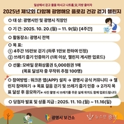 - 10월 20일부터 4주간 시민 참여형 ‘플로깅 건강 걷기 챌린지’ 운영 - 워크온 앱 통해 15만 보 걷기‧플로깅 인증 시 문화상품권 증정 광명시(시장 박승원) 보건소는 오는 20일부터 11월 9일까지 4주간 ‘제12회 다함께 광명해요! 플로깅 건강 걷기 챌린지’를 운영한다. 이번 걷기 챌린지는 시민 건강 증진과 함께 일상 속 환경 보호를 실천하는 시민 참여형 프로그램으로, 광명시민과 시 관내 직장인이면 누구나 참여할 수 있다. 행사는 걷기 모바일 앱 ‘워크온(WalkON)’에서 진행한다. 참여자는 앱 설치 후 광명시 공식 커뮤니티에 가입하고 챌린지에 참여하면 된다. 이후 4주간 총 15만 보 걷기와 1회 이상 쓰레기 줍기 인증을 모두 완료하면 목표를 달성한다. 챌린지 종료 후에는 목표를 달성한 참여자 중 무작위 추첨으로 100명에게 모바일 문화상품권(5천 원권 1매)을 증정한다. 당첨자 발표와 상품 지급은 11월 10일부터 16일까지 진행한다. 광명시는 이번 챌린지로 시민들이 건강을 관리하는 동시에 생활 속 환경 보호에 자발적으로 참여할 수 있도록 할 계획이다. 플로깅은 걷기 운동과 환경 정화를 동시에 실천할 수 있는 대표적인 친환경 활동으로, 전 세계