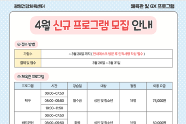 광명건강체육센터, 체육관·GX실 4월 신규 프로그램 회원 모집