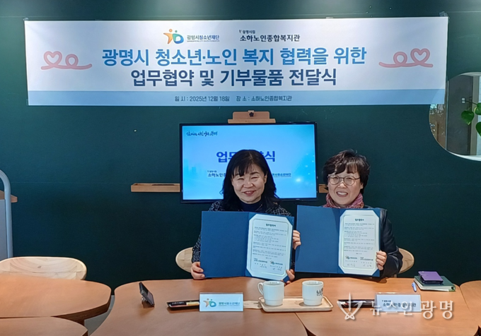 12월 18일 광명시청소년재단(이사장 박승원)과 소하노인종합복지관(관장 서은경)은 광명 지역 내 세대 통합 복지 협력체계 구축을 위해 ‘청소년·노인 복지 협력 업무협약’을 체결했다.