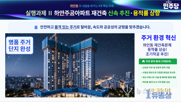 유 예비후보는 이날 발표에서 교통·주거·보상·돌봄을 중심으로 한 종합 발전 전략을 제시하며 “하안동의 내일을 실질적으로 바꾸는 실행 중심 정치”를 강조했다.