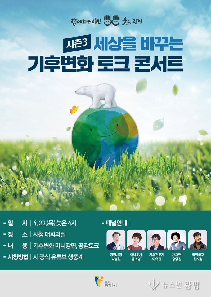 22일 오후 4시에는 광명시청 대회의실에서 비대면으로 ‘세상을 바꾸는 기후변화 토크콘서트’ 세 번째 이야기가 진행된다.