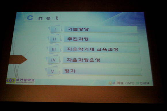 끝으로, ‘꿈과 끼를 키우는 하안 자유학기제’라는 주제로 하안 중학교 박미영 교사의 사례 발표가 있었다. 하안 중학교는 지난해에 관내에서 자유학기제를 처음 실시하였다. 자유학기제를 진행하면서 선생님들은 수업방식의 변화를 모색하였고, 아이들은 토론과 실습, 체험 위주의 수업을 하였다고 한다.