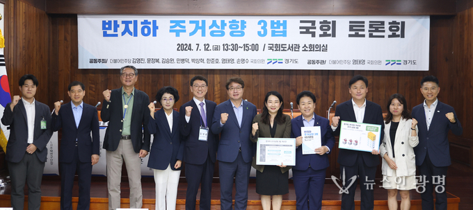 경기도는 12일 국회도서관 소회의실에서 김성중 경기도 행정1부지사, 염태영 의원 등 국회의원 8명, 민간 전문가, 시민단체 등과 비정상 거처인 반지하주택 거주민의 주거 상향을 위한 토론회를 열었다.