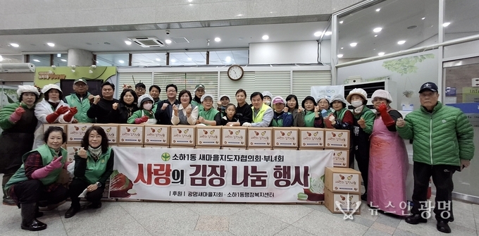 광명시 소하1동 새마을지도자협의회(회장 이욱규)와 새마을부녀회(회장 김용덕)는 지난 12일부터 13일까지 이틀간 소하1동 행정복지센터에서 취약계층을 위한 ‘사랑의 김장 나눔’ 행사를 진행했다.