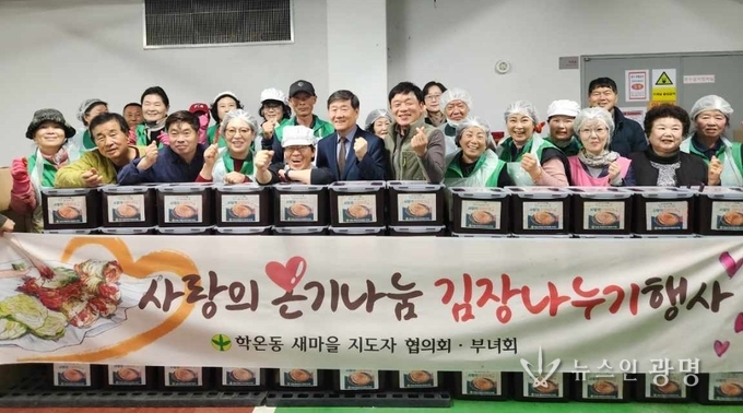 광명시 학온동 새마을지도자협의회(회장 이수남)와 새마을부녀회(회장 이선자)는 지난 12일과 13일 양일간 학온동 행정복지센터 지하 주차장에서 ‘사랑의 김장 나누기’ 행사를 진행했다.