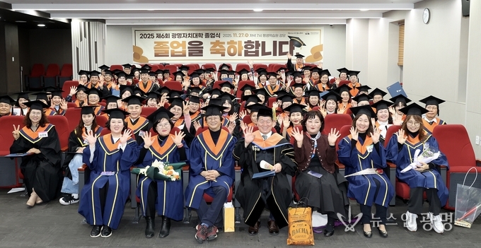 광명시(시장 박승원)는 지난 27일 평생학습원 강당에서 ‘2025학년도 광명자치대학 졸업식’을 열고 20주 학습 과정을 마친 91명의 졸업생을 축하했다.