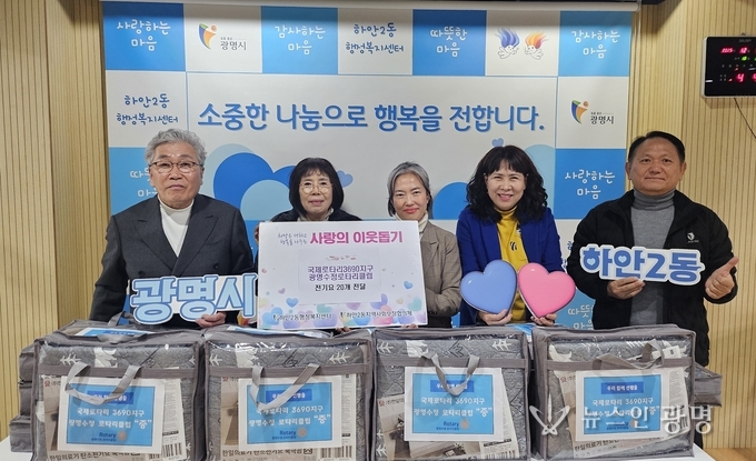 광명시 하안2동 지역사회보장협의체(위원장 김수현)는 지난 9일 국제로타리3690지구 광명수정로타리클럽(회장 한영옥)의 후원으로 겨울맞이 ‘전기요 나눔 행사’를 진행했다.