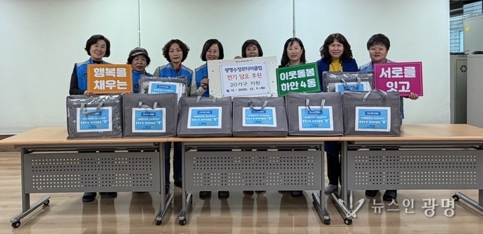 광명시 하안4동 지역사회보장협의체(위원장 안명숙)는 지난 9일 국제로타리3690지구 광명수정로타리클럽(회장 한영옥)의 후원으로 관내 취약계층 20가구에 전기담요를 전달했다.