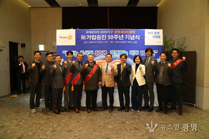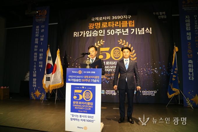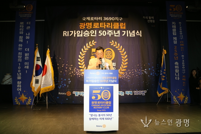 광명 로타리클럽은 1975년 RI 가입 승인 이후 50년간 지역사회 봉사, 국제교류, 인도적 지원 등 다양한 활동을 이어오며 지역사회 발전에 기여해 왔다. 이번 50주년 기념식은 그간의 성과를 돌아보고 앞으로의 새로운 도약을 다짐하는 뜻깊은 자리로 평가받고 있다。