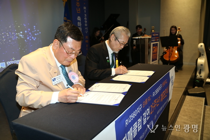 국제로타리 3690지구 광명로타리클럽(회장 정승기)은 12월 19일(금) 오후 5시 30분, 테이크호텔에서 RI가입승인 50주년 기념식을 개최했다. 이번 행사는 시로네 로타리클럽(국제로타리 2560지구)과의 자매결연 25주년을 함께 기념하며 양국의 우정과 협력을 재확인하는 뜻깊은 자리로 마련됐다.