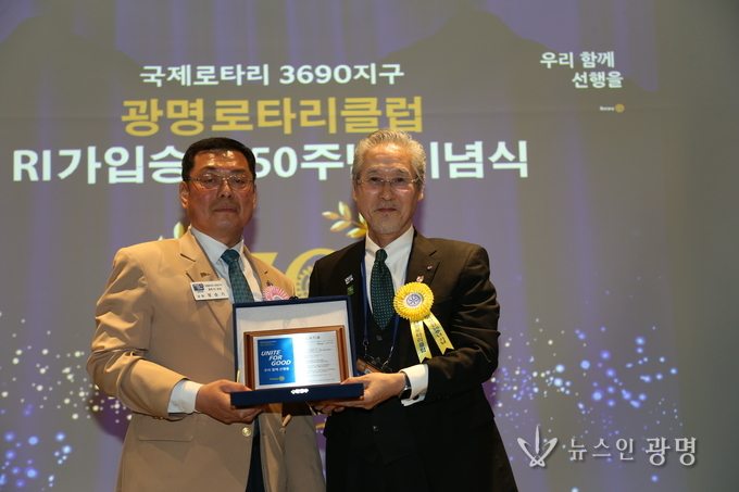 “50년 동안 지역사회와 세계를 위해 봉사해 온 광명로타리클럽의 역사는 모든 회원의 헌신이 만든 값진 성과”라며 “앞으로도 ‘우리 함께 선행을’이라는 RI 회장의 표어처럼 더 큰 나눔을 실천하겠다。”고 밝혔다.