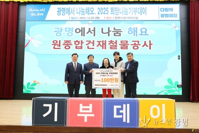 원종합건재철물공사에서 전달받은 성금은 광명희망나기운동본부를 통해 복지 사각지대 저소득 가정으로 전달될 예정이다.